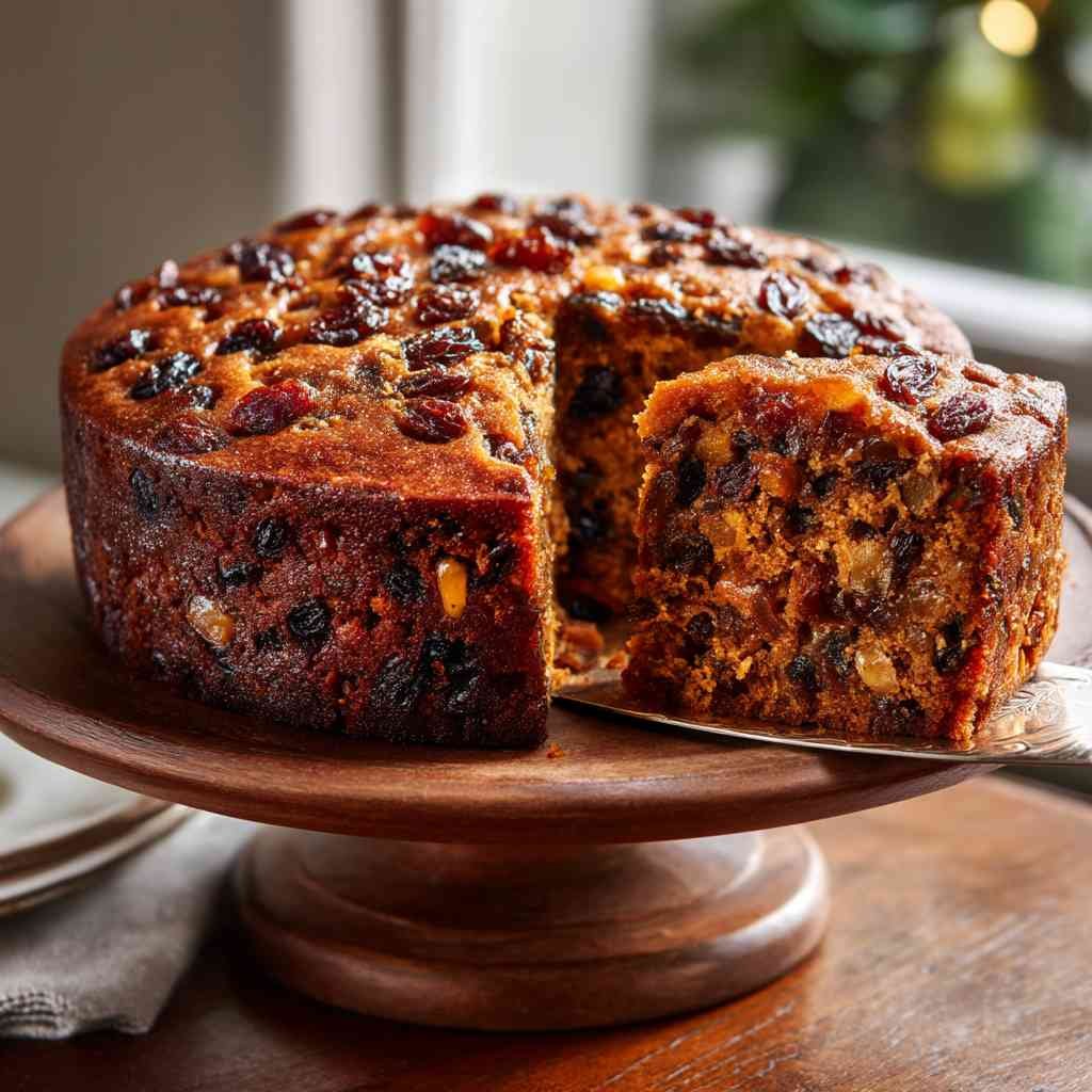 Perfectly spiced fruit cake bursts with tender dried fruits and luxurious flavor that improves with age.
