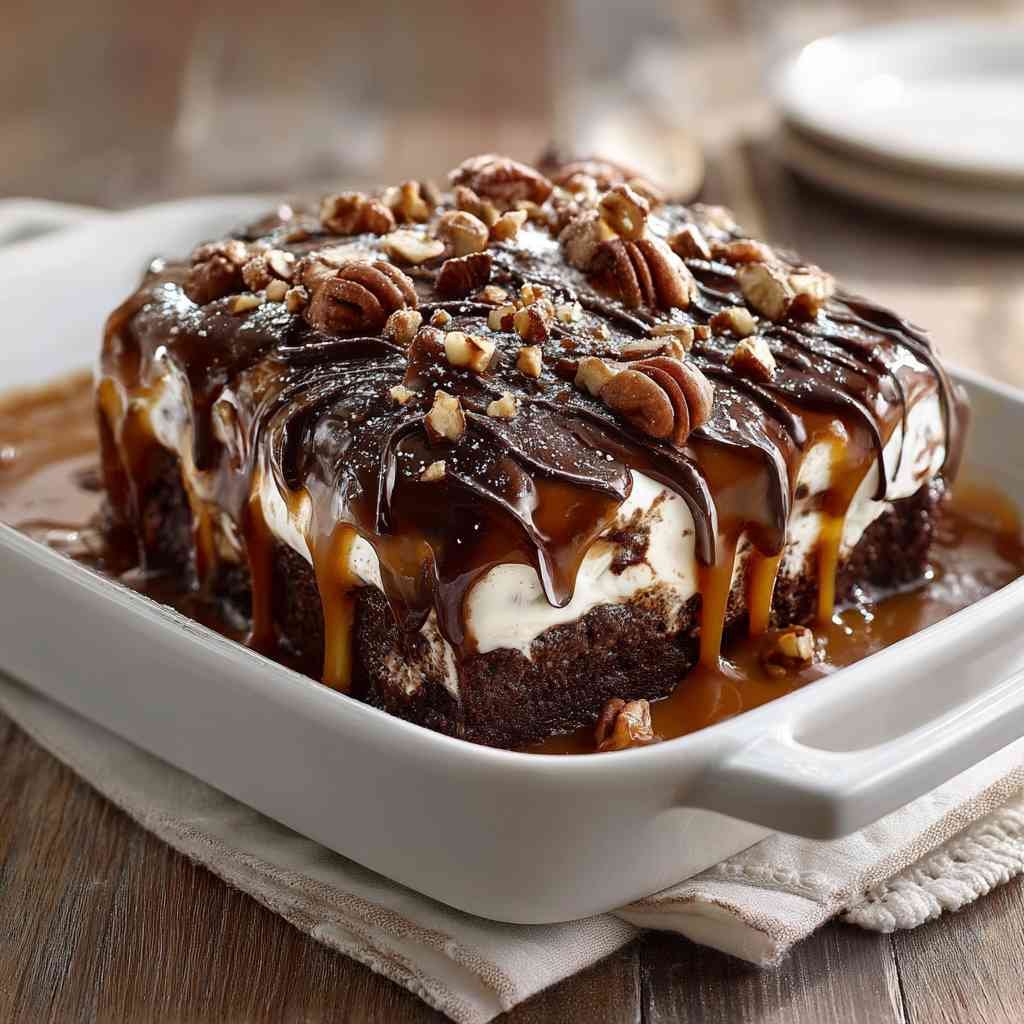 Just one bite of this decadent Turtle Poke Cake reveals a symphony of chocolate, caramel, and pecans that'll leave you craving more.