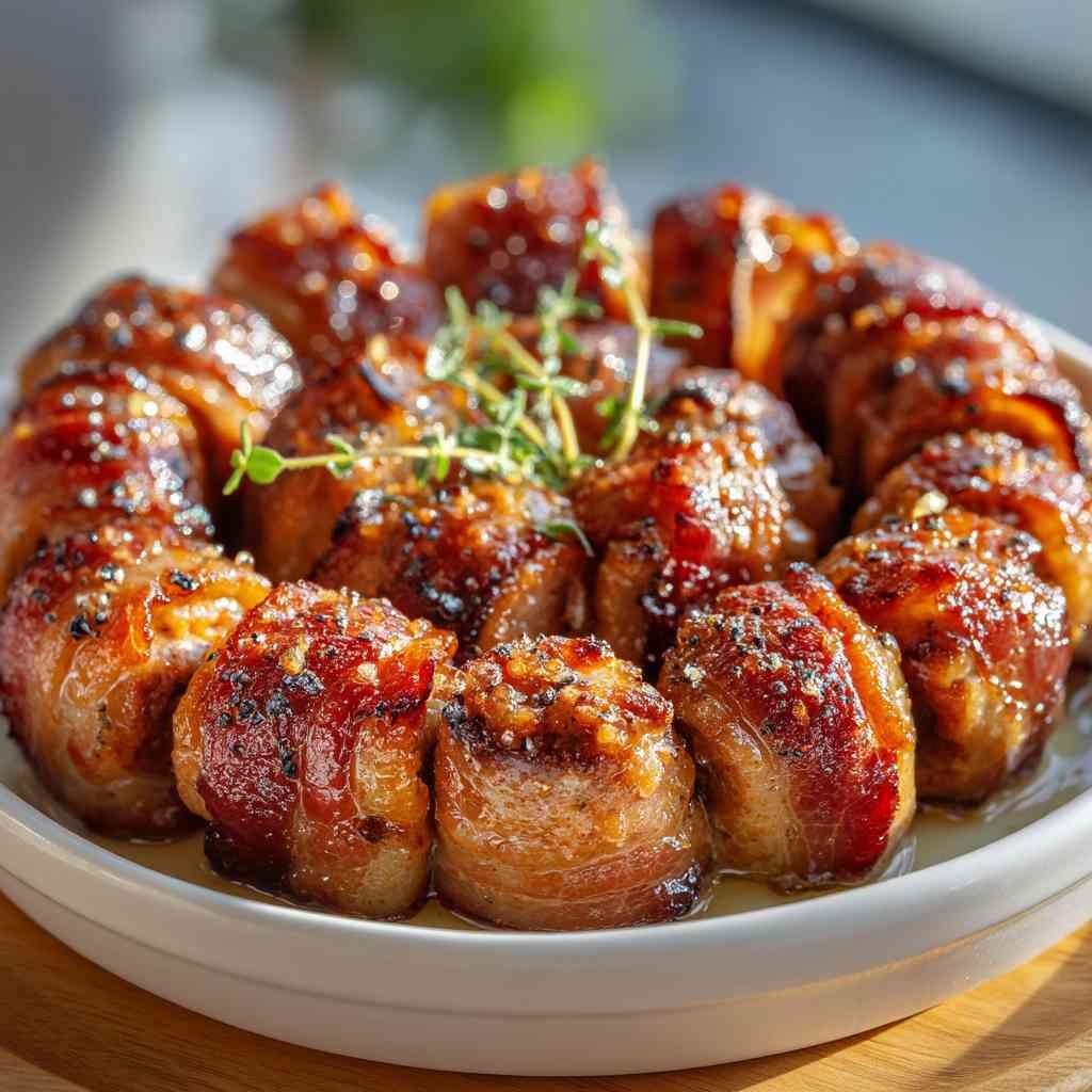 Grab these irresistible cocktail sausages wrapped in crispy bacon for your next gathering, but wait until you taste the sweet-savory glaze.
