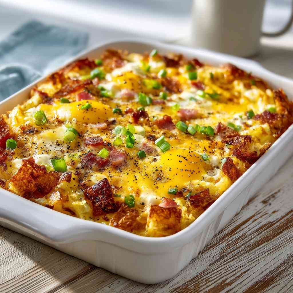 Lazy weekend mornings deserve this hearty, customizable breakfast casserole that combines hash browns, eggs, and your favorite add-ins.