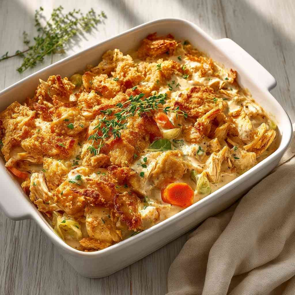Perfect weeknight comfort awaits in this creamy, cheesy ultimate chicken casserole with its irresistible buttery cracker topping.